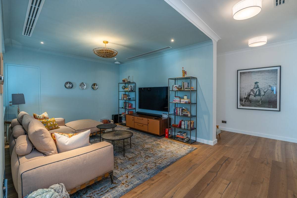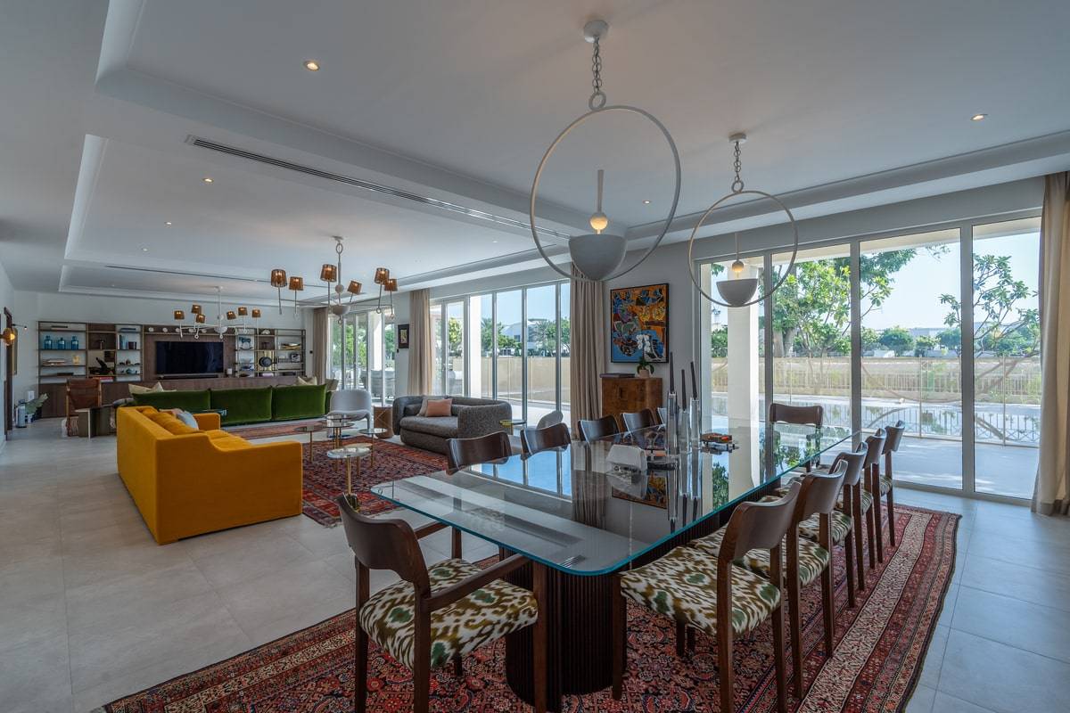 One of our most extensive project refurbishments included this villa, which allowed us to extend the full range of our design skills and services. Flooring was one of the key elements in our concept, opting for semi solid wood floors on the first floor and stunning porcelain tiles used throughout the ground level. We also completed a G+1 extension, including a glass courtyard enclosure with a beautiful walk-in wardrobe situated above. Finally, we utilised our joinery expertise to craft custom stairs, kitchen units, study tables and terrazzo tops to impressive effect.